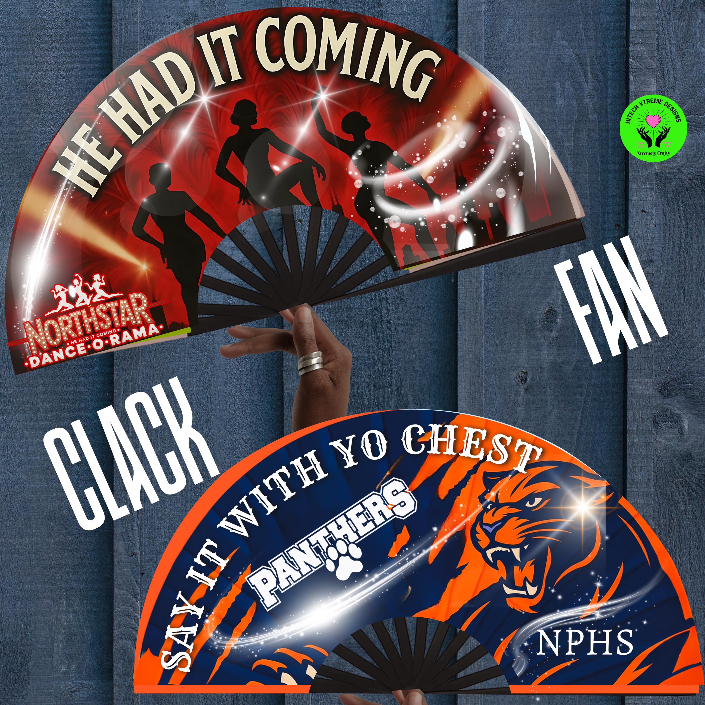 Custom Printed Hand Fan 25″×13″ — Personalized for Weddings, Events, Gifts, Clack fan